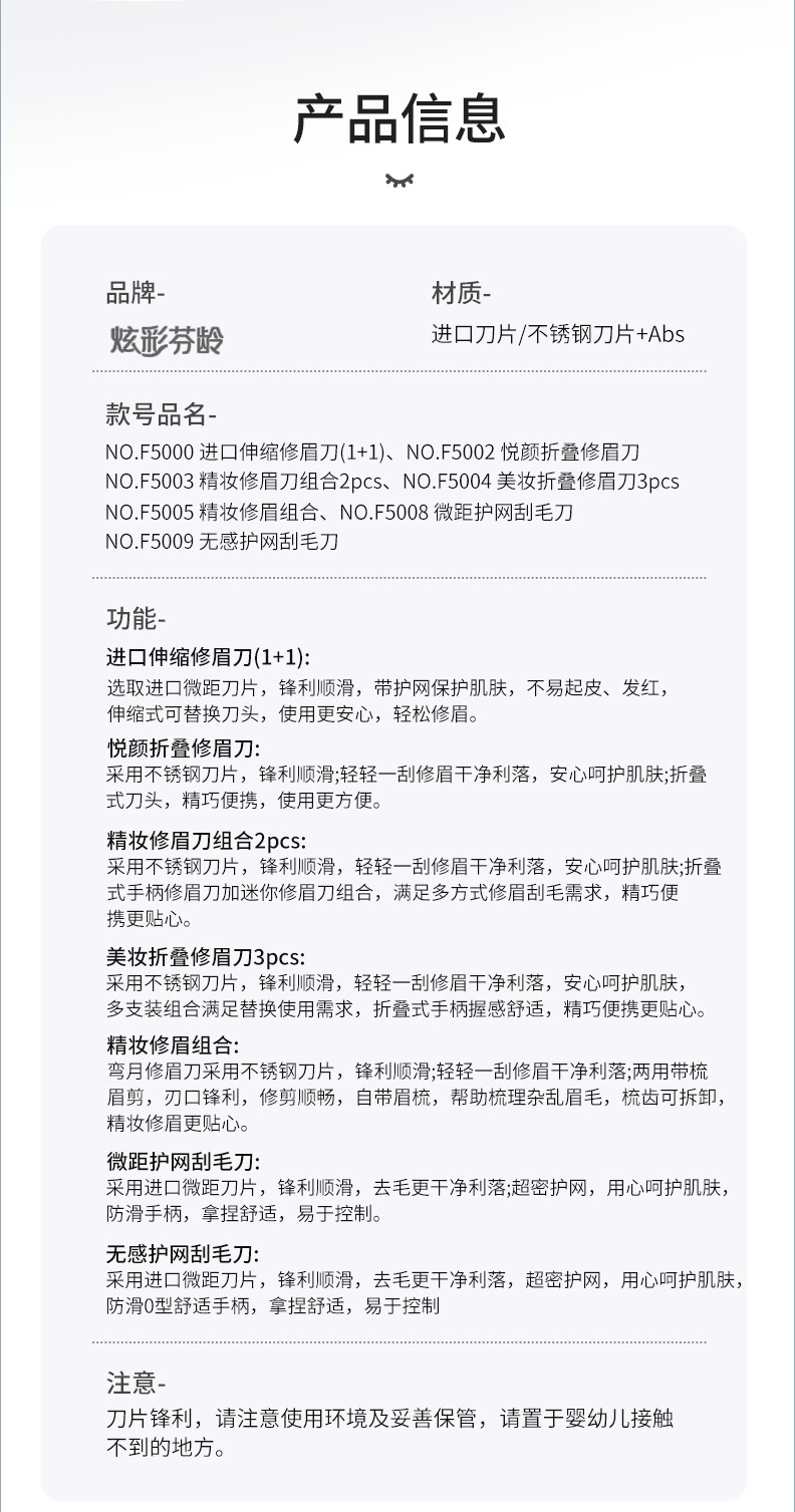 F5000-F5002-F5003-F5004-F5005-F5008-F5009-修眉刀腋毛刀